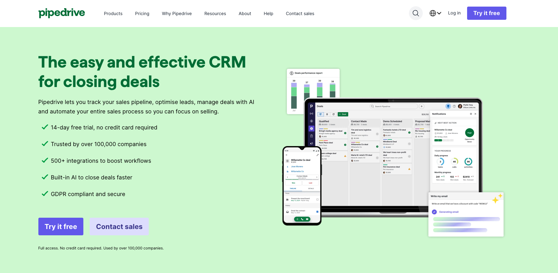 Pipedrive is a sales-focused CRM built by salespeople, for salespeople. Originally created in 2010 by sales managers frustrated with clunky CRM software, Pipedrive has grown to serve over 100,000 companies worldwide.